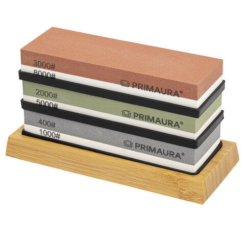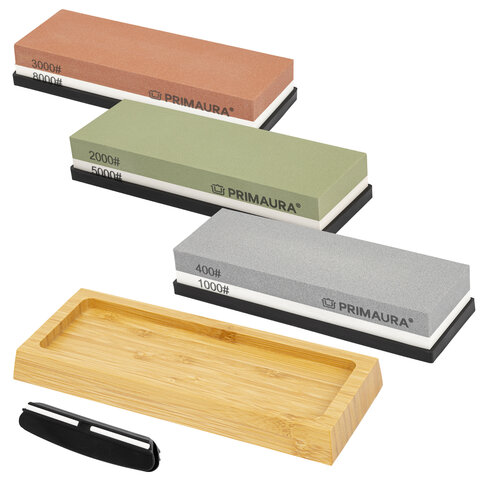 Точильный камень водный, КОМПЛЕКТ 2 шт., НАБОР 6 предметов, 400/1000/3000/8000 грит, PRIMAURA (ПРИМАУРА), 701628