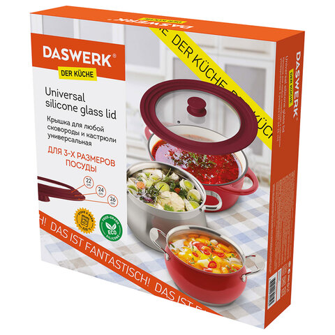 Купить Крышка для любой сковороды и кастрюли универсальная 3 размера (22-24-26 см) бордовая, DASWERK (ДАСВЕРК), 607587 вы можете в компании Канцтовары Карандашов, оформив заказ в интернет магазине, или