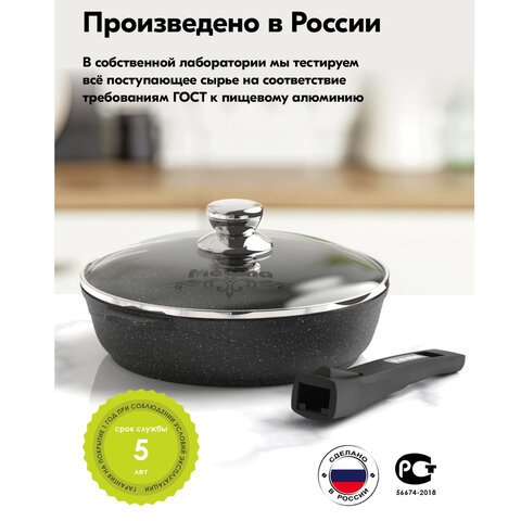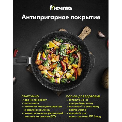 Купить Сковорода 28 см, съемная soft-touch ручка, крышка, антипригарное покрытие, МЕЧТА "Гранит Black", с028802 вы можете в компании Канцтовары Карандашов, оформив заказ в интернет магазине, или