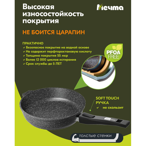 Сковорода индукционная 26 см, съемная soft-touch ручка, антипригарное покрытие, МЕЧТА "Гранит", 026802И