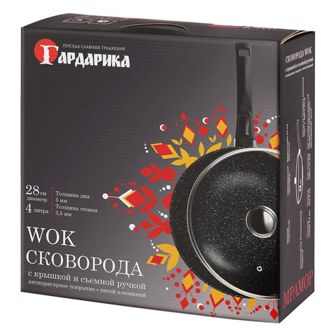 Купить Сковорода ВОК 28 см, 4 л, с крышкой, пятислойное антипригарное покрытие, съёмная ручка, ГАРДАРИКА "Орион", 0728-04-01-10 вы можете в компании Канцтовары Карандашов, оформив заказ в интернет магазине, или