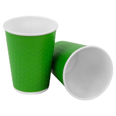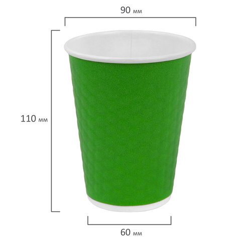 Стакан одноразовый бумажный 300/360 мл, D 90 мм, двухслойный, "Соты", зеленый, КОМПЛЕКТ 50 шт., холодное/горячее, WELDAY (ВЭЛДЭЙ), 702706