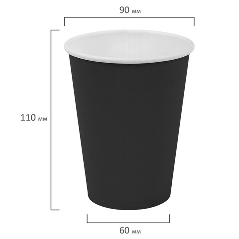 Стакан одноразовый бумажный 350/410 мл, D 90 мм, черный, КОМПЛЕКТ 1000 шт., холодное/горячее, WELDAY (ВЭЛДЭЙ), 702692