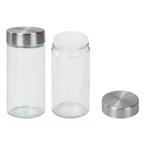 Солонка-перечница 50 мл, BASIC, баночка для специй, стекло/сталь, дисплей, WEGLA (ВЕГЛА), 700224