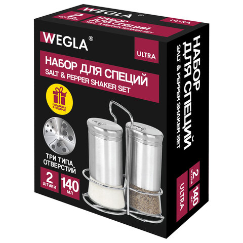 Купить Набор для специй 2х140 мл, ULTRA, подставка + солонка + перечница, 3 типа отверстий, WEGLA (ВЕГЛА), 700234 вы можете в компании Канцтовары Карандашов, оформив заказ в интернет магазине, или