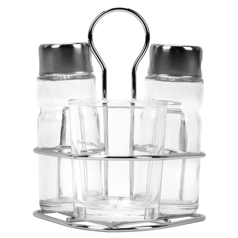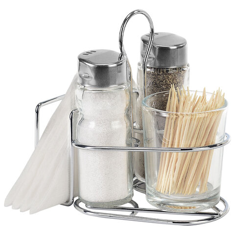 Комплектация: перечница, подставка, салфетница, солонка, стакан под зубочистки