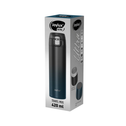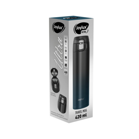Термокружка 420 мл JOYLUX (ДЖОЙЛЮКС) ULTRA GRADIENT, нержавеющая сталь SUS304, черный/синий, 700275