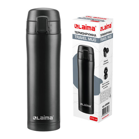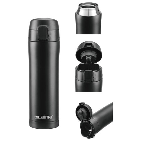 Купить Термокружка 470 мл из нержавеющей стали SUS304, безграничный черный матовый, LAIMA, 608080 вы можете в компании Канцтовары Карандашов, оформив заказ в интернет магазине, или