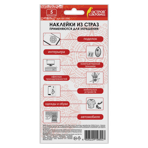 С помощью наклеек из страз ОСТРОВ СОКРОВИЩ можно декорировать поделки, детали интерьера, одежду и гаджеты, реализовать самые смелые творческие идеи!