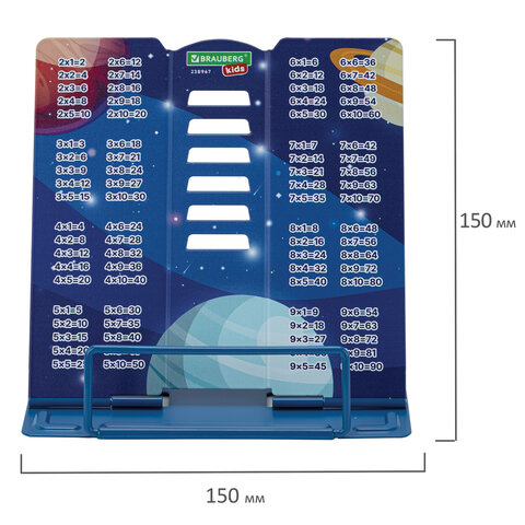 Подставка для книг и учебников BRAUBERG KIDS mini "Deep Space" с таблицей умножения, регулируемый угол наклона, металлическая, 238967