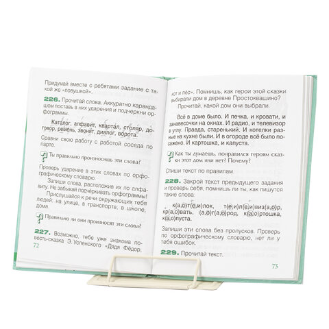 Подставка полностью выполнена из металла, поэтому отлично подойдет для надежной фиксации тяжелых и объемных учебных материалов и книг. Оригинальный дизайн понравится школьнику любого возраста, таблица умножения будет полезна в учебе. Регулируемый угол наклона обеспечивает удобство при работе с текстом, облегчает чтение и выполнение домашней работы.