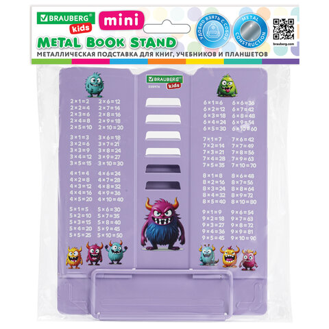 Купить Подставка для книг и учебников BRAUBERG KIDS mini "Monsters" с таблицей умножения, регулируемый угол наклона, металлическая, 238976 вы можете в компании Канцтовары Карандашов, оформив заказ в интернет магазине, или