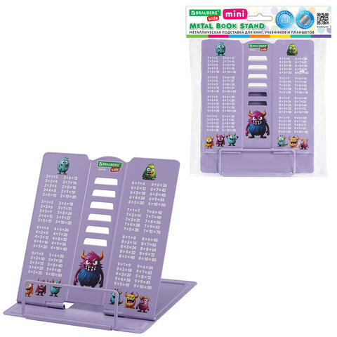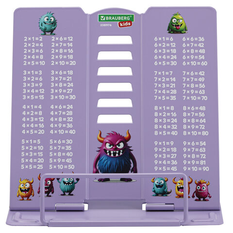 Подставка для книг и учебников BRAUBERG KIDS mini "Monsters" с таблицей умножения, регулируемый угол наклона, металлическая, 238976