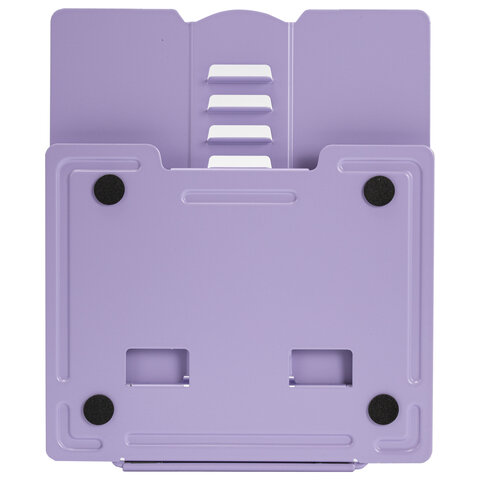 На нижней части подставки предусмотрены противоскользящие элементы. Размер подставки – 150х150х130 мм. Цвет – фиолетовый. Подставка упакована в прозрачный пакет с картонным европодвесом.