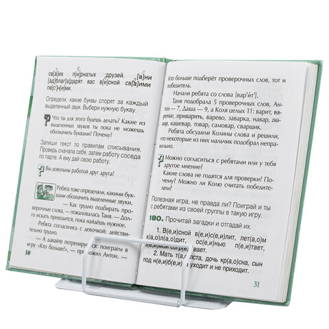 Подставка полностью выполнена из металла, поэтому отлично подойдет для надежной фиксации тяжелых и объемных учебных материалов и книг. Оригинальный дизайн понравится школьнику любого возраста, таблица умножения будет полезна в учебе. Регулируемый угол наклона обеспечивает удобство при работе с текстом, облегчает чтение и выполнение домашней работы.