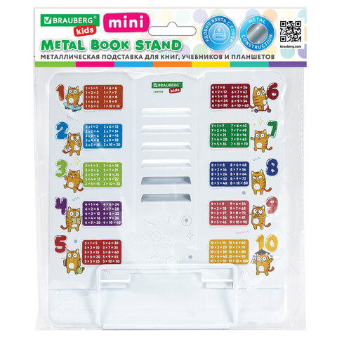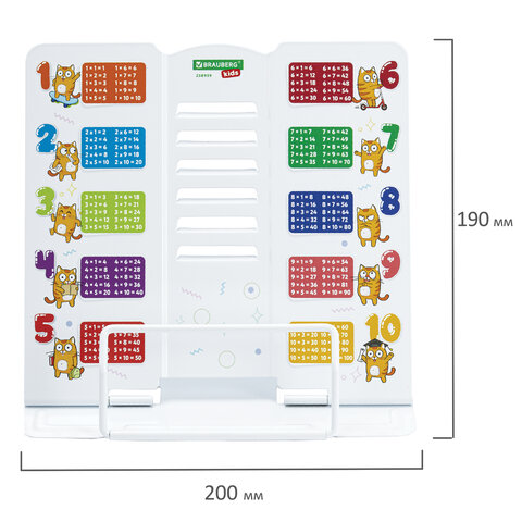 Купить Подставка для книг и учебников большая BRAUBERG KIDS "Кот-Энтузиаст" с таблицей умножения, регулируемый угол наклона, металлическая, 238959 вы можете в компании Канцтовары Карандашов, оформив заказ в интернет магазине, или