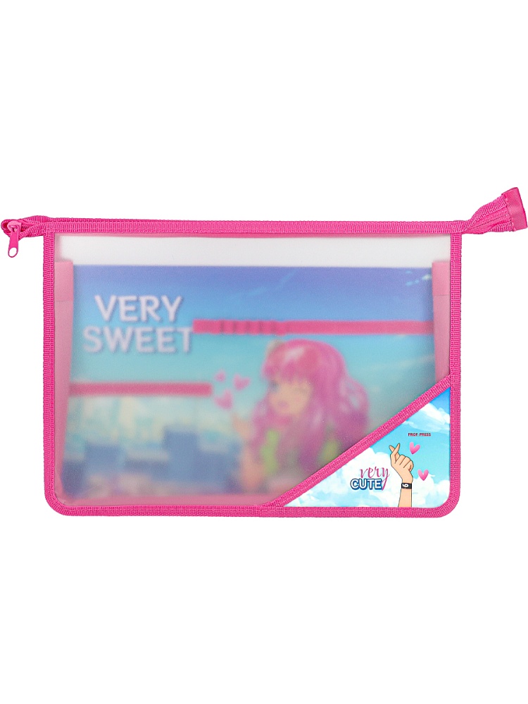 Папка для труда на молнии сверху, с двумя отдел. КАВАЙНАЯ ДЕВЧОНКА - 4 (ПТР-9626) пластик