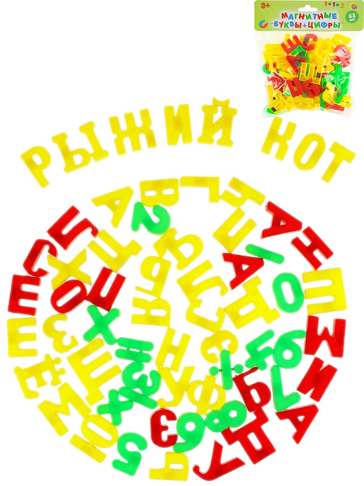 Набор букв и цифр на магнитах является отличным пособием для подготовки детей к школе! Благодаря ему ребенок запомнит цифры и буквы, и вскоре начнет складывать слова и даже предложения. Для лучшего зрительного усвоения и непроизвольного запоминания элементы набора можно использовать везде — на холодильнике, специальной магнитной доске, на любой плоской металлической поверхности в комнате или на кухне. Результат игры с набором не заставит себя долго ждать! В наборе: 63 элемента. Размер букв и цифр 2,9 см. В пакете.