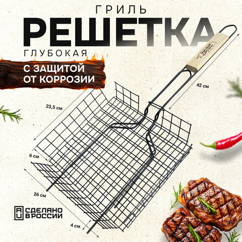 Купить Решетка-гриль ГЛУБОКАЯ универсальная, размер 260х235 мм, глубина 60 мм, оксидированное покрытие, 101405, 701744 вы можете в компании Канцтовары Карандашов, оформив заказ в интернет магазине, или