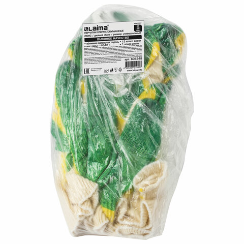 Перчатки хлопчатобумажные, износостойкие ОДИНАРНЫЙ латексный облив, 13 класс, КОМПЛЕКТ 5 ПАР, LAIMA ЛЮКС, 600802