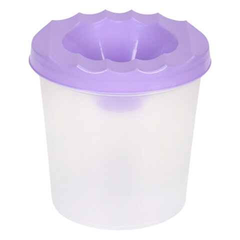 Специальная форма крышки стакана исключает возможность вытекания воды. Линия на прозрачном корпусе указывает на максимально возможный уровень наполнения. Выполнен из прочного пластика. Имеются специальные углубления на крышке для размещения кисточек. Полный объем – 250 мл. Объем до уровня – 50 мл.