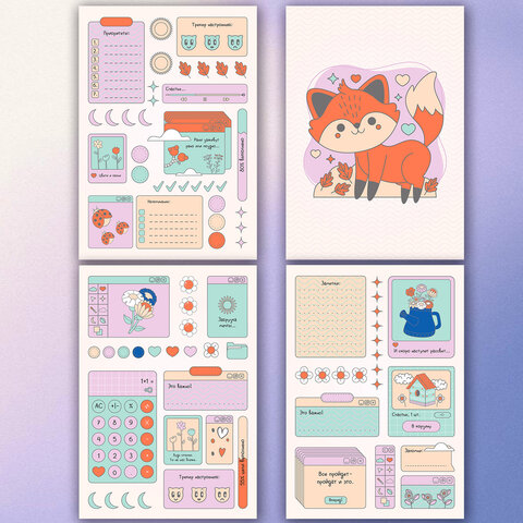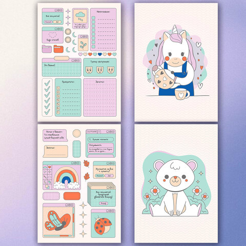Стикербук формата А5 помимо стильных наклеек имеет иллюстрации на оборотной стороне, которые можно вырезать и наклеить при помощи клея после удаления всех наклеек. Это прекрасный способ дополнить наклейки дополнительными картинками. Наклейки не увеличат толщину страниц, так как очень тонкие и при этом плотные. Листочки скреплены при помощи скрепок.
