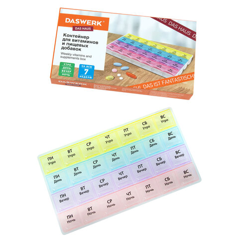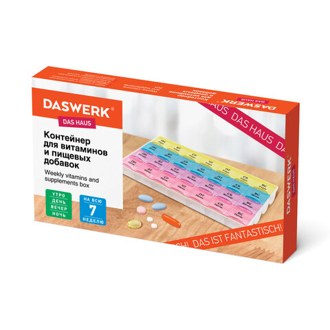ТАБЛЕТНИЦА / Контейнер-органайзер для лекарств и витаминов, 7 дней/3 приема BOX, DASWERK (ДАСВЕРК), 630848