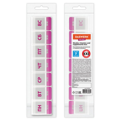 Купить ТАБЛЕТНИЦА/Контейнер-органайзер для лекарств и витаминов "7 дней/1 прием MAXI", DASWERK (ДАСВЕРК), 631024 вы можете в компании Канцтовары Карандашов, оформив заказ в интернет магазине, или