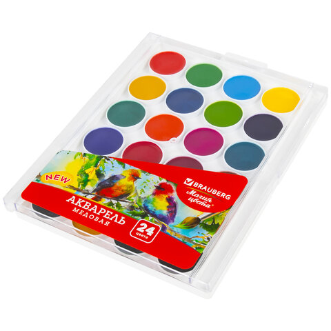 Купить Краски акварельные BRAUBERG "МАГИЯ ЦВЕТА NEW", медовые, 24 цвета, круглые кюветы, пластиковый пенал, 192365 вы можете в компании Канцтовары Карандашов, оформив заказ в интернет магазине, или