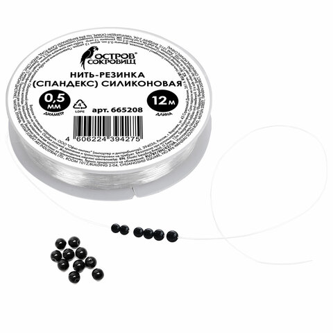 Нить-резинка (спандекс) силиконовая, диаметр – 0,5 мм, длина – 12 м, прозрачная, ОСТРОВ СОКРОВИЩ.