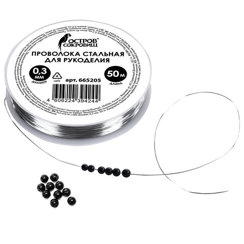 Купить Проволока стальная для рукоделия, диаметр 0,3 мм, длина 50 м, ОСТРОВ СОКРОВИЩ вы можете в компании Канцтовары Карандашов, оформив заказ в интернет магазине, или