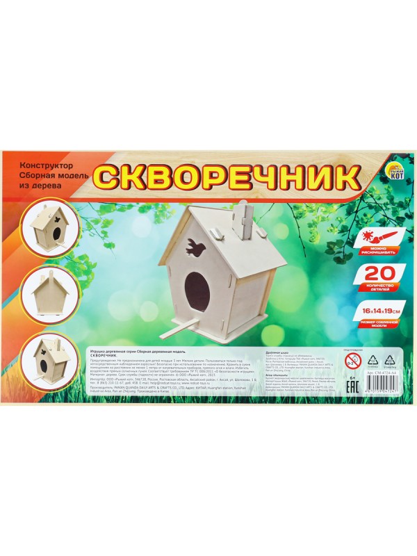 Сборная модель из дерева. Скворечник (20 деталей, 15,7*14*19см)