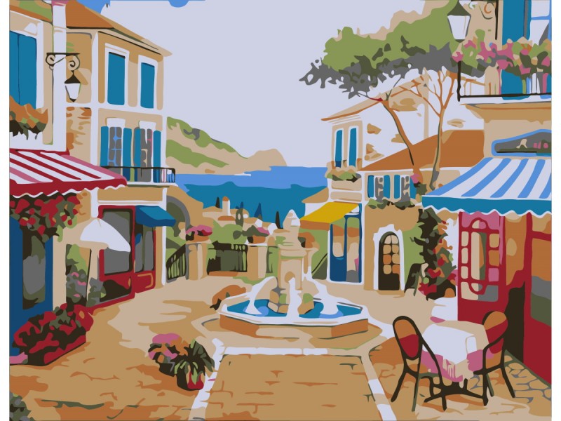 Холст с красками 17х22 по номер. в кор. (14цв.) Городской фонтан (Арт. Х-3851)