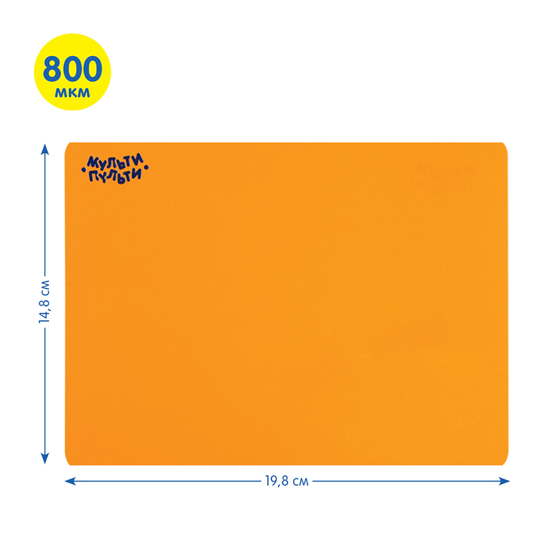 Доска для лепки Мульти-Пульти поможет сохранить рабочее место ребёнка в чистоте при занятии лепкой пластилином. Может применяться для моделирования поделок и аппликаций. На доске ребенок сможет раскатывать пластилин, разминать его и разделять на кусочки. Доска выполнена из высококачественного пластика толщиной 800 мкм. Благодаря тому, что доска гнётся, ребенок сможет легко отлепить готовые поделки. Доска выполнена в оранжевом цвете с логотипом торговой марки.