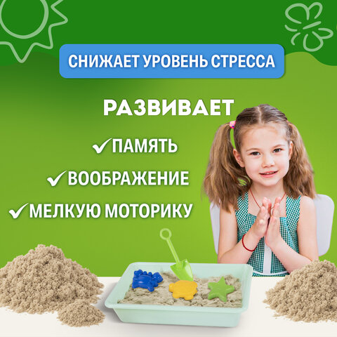Безопасный кинетический умный песок BRAUBERG KIDS не отличим от влажного морского песка, но в руках творца он приобретает удивительно пластичные свойства, которых лишен обычный песок.