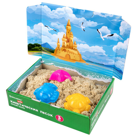Купить Песок для лепки кинетический, цвет песочный, 3 кг, коробка-песочница, формочки, BRAUBERG KIDS, 666008 вы можете в компании Канцтовары Карандашов, оформив заказ в интернет магазине, или