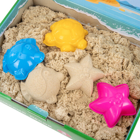 Состав набора: кинетический песок песочного цвета и 3 формочки для лепки. Вес набора – 3000 г.