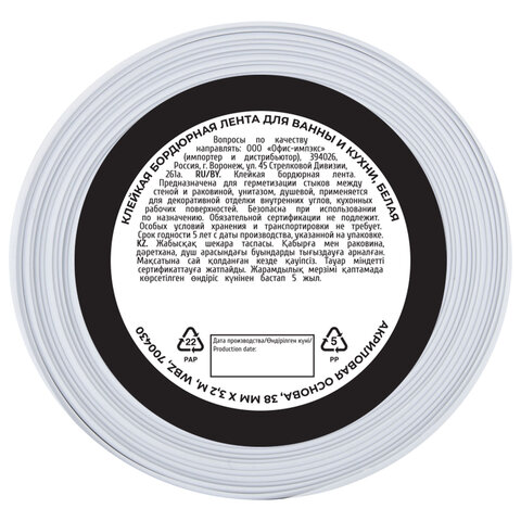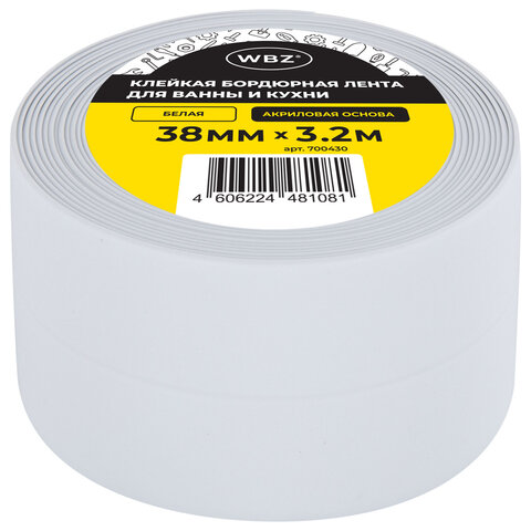 Купить Клейкая лента бордюрная для ванны и кухни 38 мм х 3,2 м, белая, акриловая основа, WBZ (ВБЗ), 700430 вы можете в компании Канцтовары Карандашов, оформив заказ в интернет магазине, или