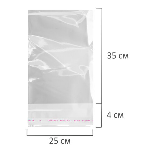 Пакеты БОПП с клеевым клапаном, КОМПЛЕКТ 100 штук, 25х35 + 4 см, 30 мкм, с усиленным швом, BRAUBERG, 700409