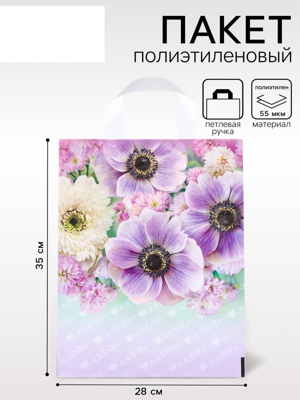 Пакет «Анемона», полиэтиленовый с петлевой ручкой, 35×28 см, 55 мкм