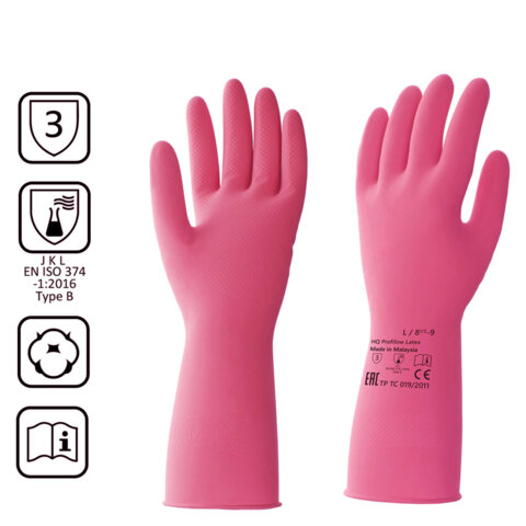 Купить Перчатки латексные КЩС, сверхпрочные, плотные, хлопковое напыление, размер 8,5-9, L (большой), красные, HQ Profiline, 73585 вы можете в компании Канцтовары Карандашов, оформив заказ в интернет магазине, или