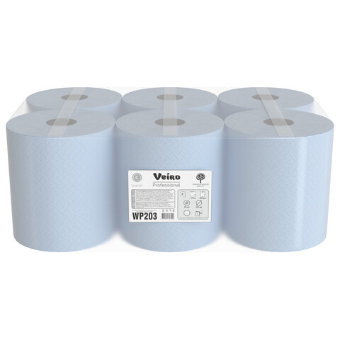 Бумага протирочная с центральной вытяжкой 175 метров VEIRO (M4) COMFORT, 2-слойная, КОМПЛЕКТ 6 рулонов, WP203