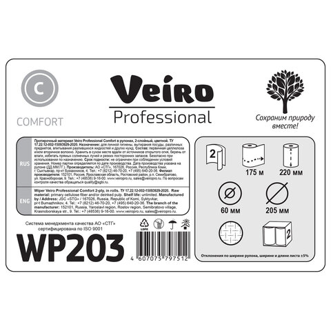 Купить Бумага протирочная с центральной вытяжкой 175 метров VEIRO (M4) COMFORT, 2-слойная, КОМПЛЕКТ 6 рулонов, WP203 вы можете в компании Канцтовары Карандашов, оформив заказ в интернет магазине, или