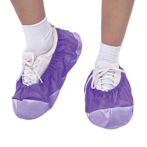 Бахилы ламинированные, КОМПЛЕКТ 500 шт., 38х16 см, спанбонд + ПВД, 100 мкм, 13 г, фиолетовые, ELEGREEN, ПВД-50/2р-Ф-Б