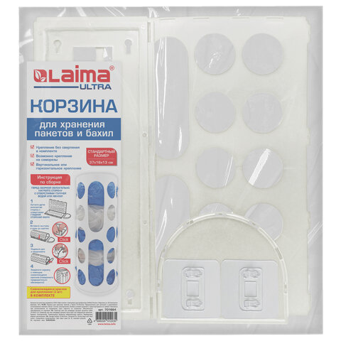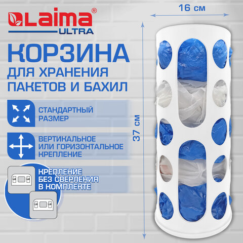Купить Корзина / диспенсер для хранения пакетов и бахил СРЕДНЯЯ 37х16х13 см, крючки-крепеж в комплекте, белая, LAIMA ULTRA, 701664 вы можете в компании Канцтовары Карандашов, оформив заказ в интернет магазине, или
