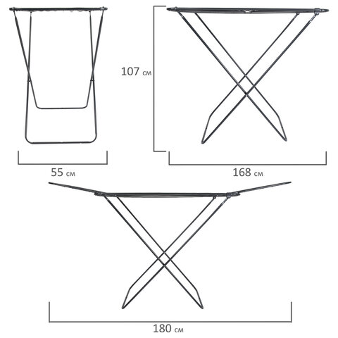 Сушилка напольная для белья раскладная, 3 зоны сушки, 19 метров, LAIMA HOME TRIO BLACK, 700470
