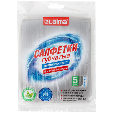 Купить Салфетки губчатые для уборки кухни 15х18 см, ЦЕЛЛЮЛОЗНЫЕ, КОМПЛЕКТ 5 шт., серые, LAIMA, 700266 вы можете в компании Канцтовары Карандашов, оформив заказ в интернет магазине, или