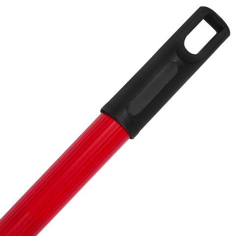 Используется в комплекте с держателем и насадкой. Подходит к техническим щеткам, а также к любым другим типам профессионального инвентаря с еврорезьбой (щеткам для пола, швабрам, держателями, метлам). Черенок имеет отверстие для подвешивания на пластиковом колпачке сверху для удобного хранения.