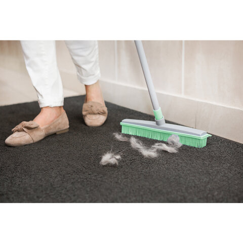 Щётка оснащена антибактериальной щетиной с микрочастицами серебра, которые предотвращают рост бактерий на поверхности изделия и гарантируют безопасное использование. Резиновая щетина отлично собирает пыль, волосы и шерсть. С другой стороны щётки имеется резиновый водосгон, который позволит с легкостью справиться с водой и пролитыми жидкостями. Щётка подходит для всех типов поверхностей: плитка, кафель, паркет и даже ковровые покрытия. Мягкая щетина не царапает пол. Телескопическая рукоятка позволяет регулировать длину в зависимости от необходимости. Рукоятка покрыта наносеребряным покрытием, поэтому уборка с щёткой YORK "BACTERIA STOP" не только эффективна, но и безопасна.
