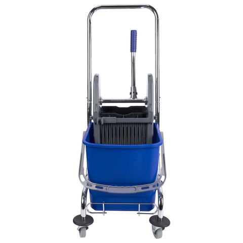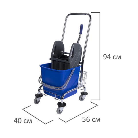 Тележка уборочная BRABIX, 1 съемное ведро 25 л, механический отжим, корзина, металлический каркас, синяя, 601498